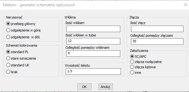 Autmoatycznei tworzy schemat optyczny, zawiera opcje różnych zakończeń, kolorowanie i numerowanie włókien